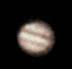 Nachtrag: Am nächsten Tage wurden manuell die besten Bilder herausgesucht, und abermals mit Giotto 1.1 addiert! Nicht nur, dass die Streifen nun besser hervortreten. Auch der Durchgang des Mondes Io ist zu erkennen. Das, mit 3" festzuhalten, war alles andere als leicht.