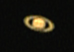 2x vergrößert. Deutlich erkennt man das beschriebene Wolkenband. Ganz rechts am Rand des Rings erkennt man schon Ansätze der Zweiteilung des Rings, was sich hier mit dem dunkleren Teil des Außenrings bemerkbar macht. Hier sind sicher noch bessere Ergebnisse zu erwarten, aber es ist wohl fraglich, ob die ca. 800mm Brennweite die Darstellung der Teilung überhaupt erlauben!