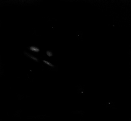 Hellstes und deutlichstes Mitglied der Gruppe - bei 98x sofort relativ leicht zu erkennen. Mit indirekter Sicht ständig sichtbar - bei 190x auch direkt sichtbar. Ovaler, recht kleiner Nebel mit hellem Zentrum und punktförmigem Kern.