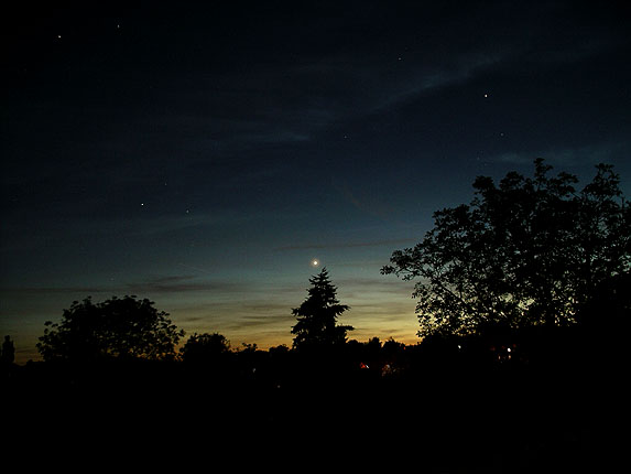 Bereits am Abend deutete sich an, daß dies eine ganz besonders schöne Nacht werden sollte. Obwohl die Sonne schon sehr tief stand, schien ihr Licht überhaupt nicht geschwächt zu sein - ein Zeichen für gute Transparenz.