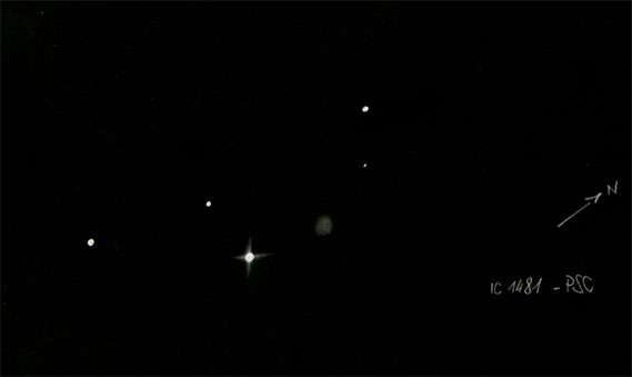 IC 1481 zählt zu den Objekten, die Spitaler zum NGC-Katalog beisteuerte. In seinen Beobachtungen am Wiener Observatorium war dies die Entdeckung Nr. 34. Dank der schönen Anordung hellerer Sterne in ihrer Nähe, ist die Galaxie trotz ihrer Lichtschwäche einfach zu finden. Bei 126x erscheint sie schwach, klein und rund, ist jedoch mit indirektem Sehen auffällig.