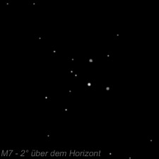 Zwischen M7 und den Horizontbäumen war sogar noch der Stern G Scorpii auf 0,5° Horizonthöhe im 8" zu erkennen!