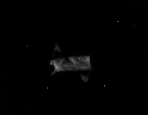 Bei 98x recht schwach, aber eindeutig sichtbar. Ein etwas elongierter Nebel mit hellerem Zentrum wird indirekt sichtbar.