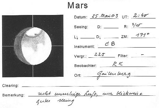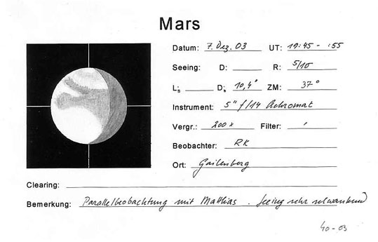 Auch Robert Korn aus dem Allgäu, machte an diesem Tag die seine erste erfolgreiche Marsbeobachtung im Jahr 2003. |