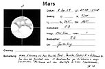 Bei gutem Seeing konnte viele dunklen Albedo-Merkmale der Süd-Hemisphäre erkennen, die auf der Zeichnung schon so verzweigt, wie das Wurzelsystem eines Baums anmuten. Deutlich sichtbar auch die "verbeulte" SPC mit den "Mounts of Mitchel". |