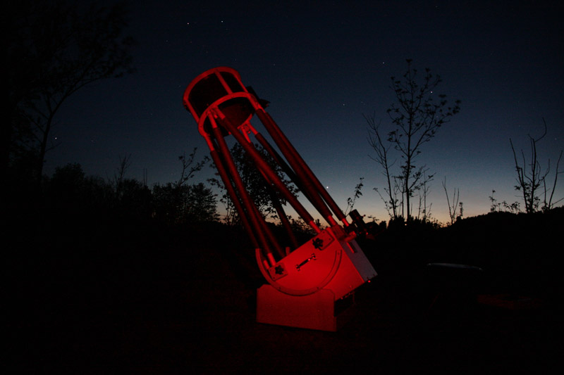 Noch bevor es dunkel war, entdeckte ein Mitbeobachter meinen 15-Zöller. Fatalerweise hatte er eine ganze Sammlung der fantastischen Ethos-Okular (die mit den 100° Gesichtsfeld) mitgebracht. Wir befanden, dass es eine gute Idee war, diese mit dem Obsession zu kombinieren und in der Tat haben mich die Beobachtungen mit dem Ethos-Virus infiziert.