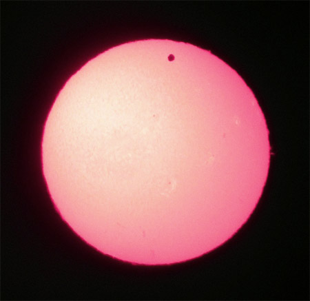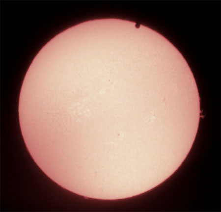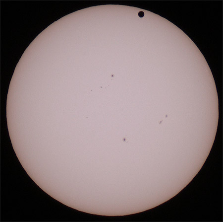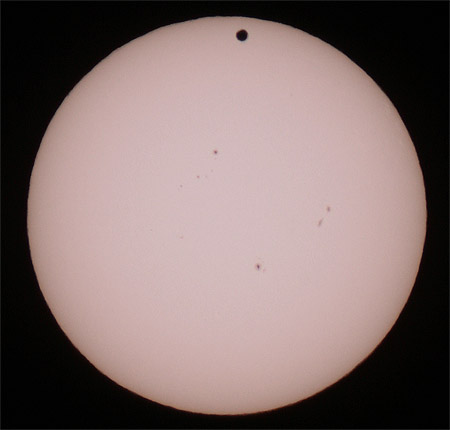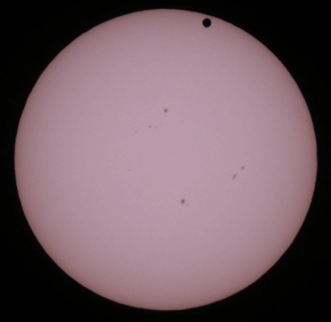Auch im Weißlicht zeigt die Sonne zahlreiche Flecken, und natürlich die Venus - 6:18 Uhr