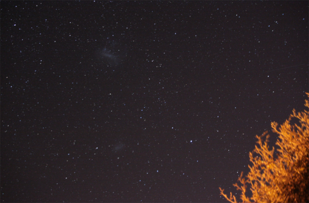 Erstmals sehe ich die Große (LMC) und die Kleine (SMC) Magellansche Wolke mit