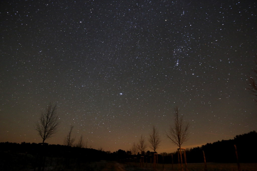 Die Wintermilchstraße zeichnet sich bei bitterkaltem Wetter über den Wäldern der Zauche ab. 2x30sec bei 16mm @ 2000 ISO